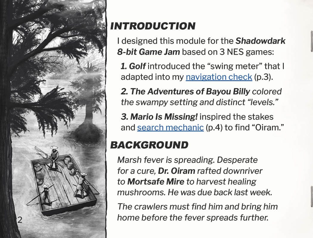 Lost in Mortsafe Mire is a Shadowdark adventure presented like a lost NES instruction booklet.