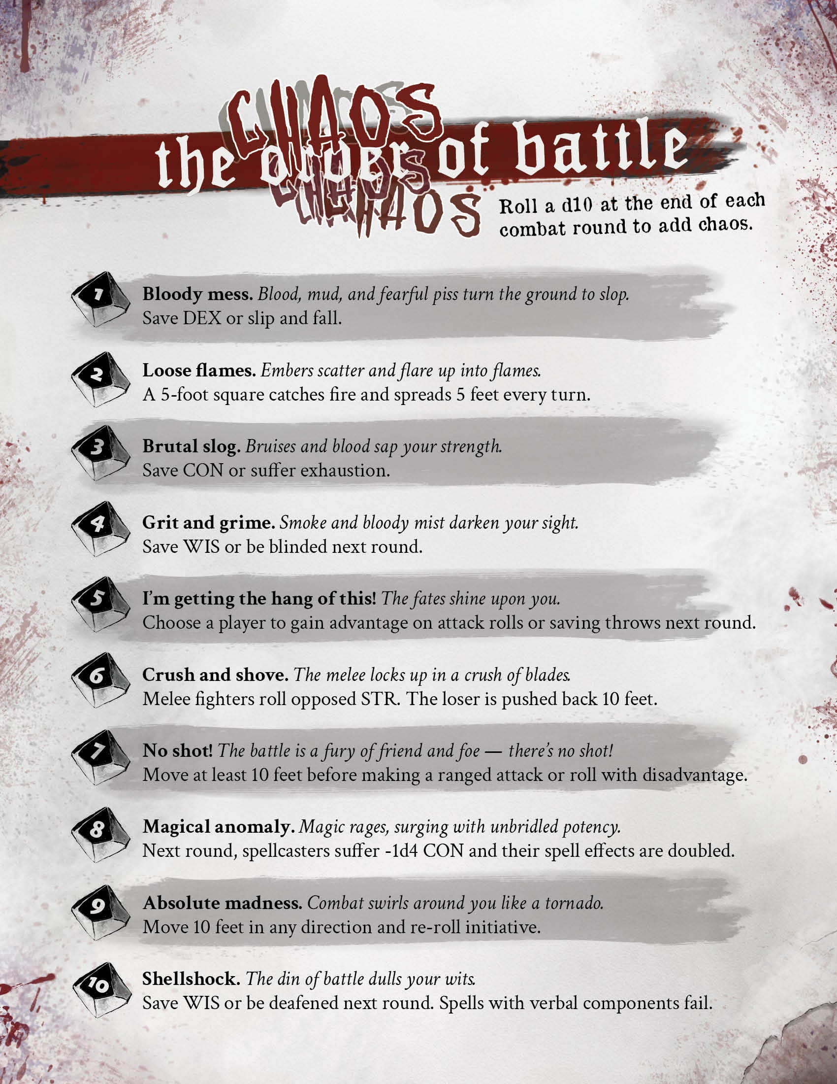 To simulate that, I roll on this d10 table at the end of every combat round.