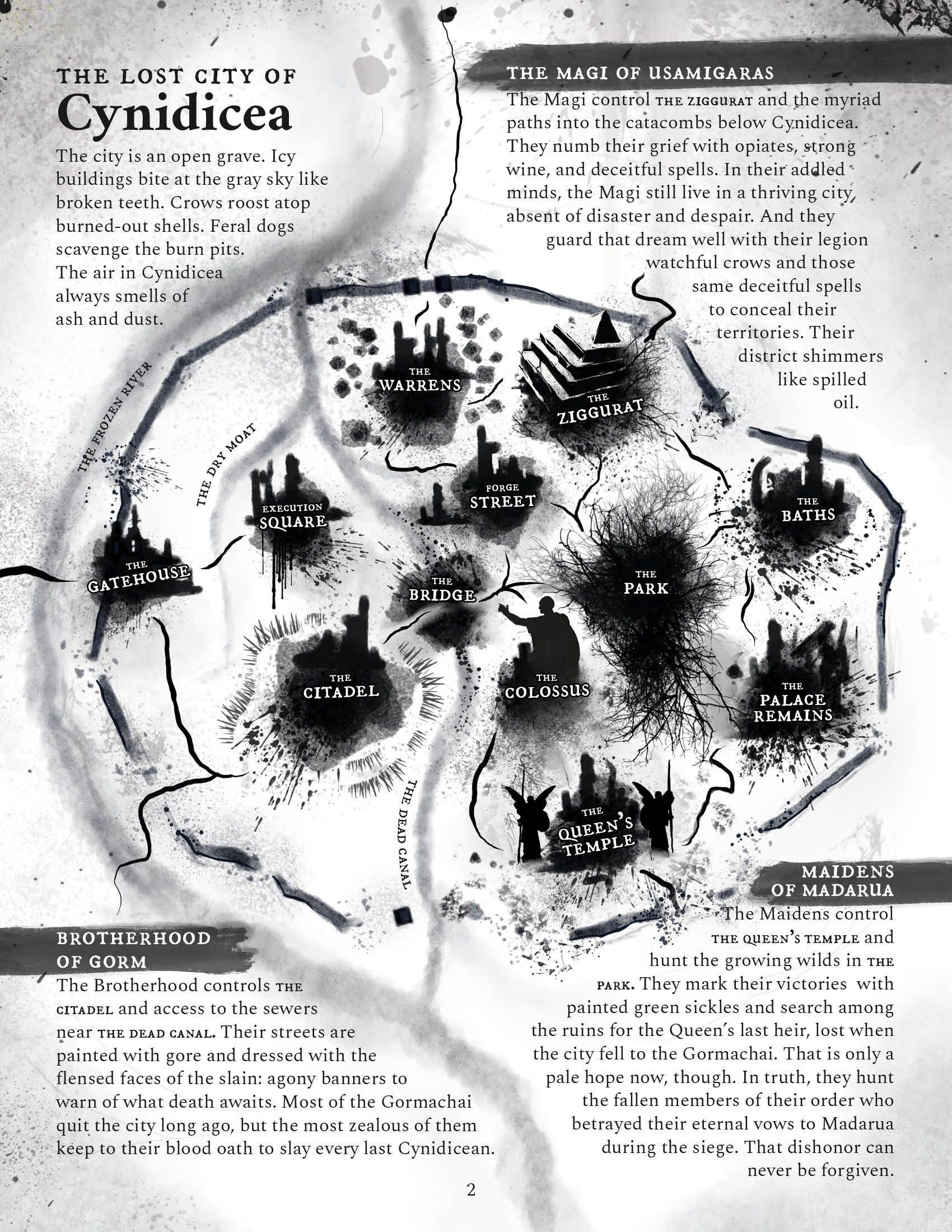 Maps are gross, used, decorated, re-drawn — they’re artifacts modified by the humans who use them. I wanted my map of Cynidicea to feel like that, as if it’s something you could find in the ruins.
